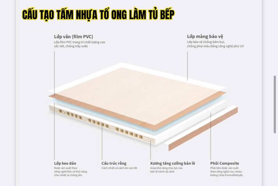 Kết cấu tấm nhựa PVC làm tủ bếp nhựa tổ ongGiá tủ bếp nhựa tổ ong hiện nay