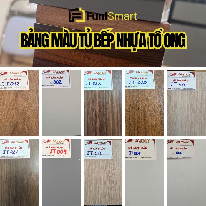 Bảng màu tủ bếp nhựa tổ ong+ Cấu trúc tổ ong độc đáo, giúp tủ đạt được độ cứng – độ nhẹ – khả năng cách nhiệt.